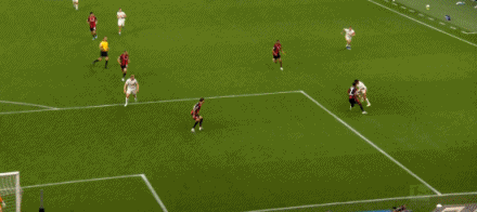 第50分钟,阿门达突入禁区打门,门将倒地将球扑出